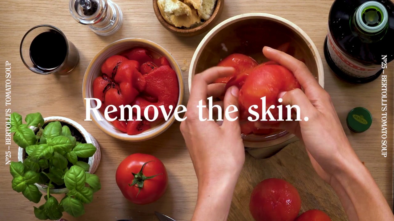 Cut a small cross in the bottom of the tomatoes and submerge them in boiling water for 30 seconds.